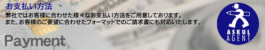 弊社指定の銀行口座までお振込ください。但し、銀行振込の際のお振込手数料はお客様ご負担となります。